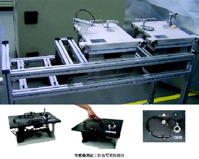 本測(cè)試系統(tǒng)采用可更換測(cè)試模塊方式,同一套工作臺(tái)可以測(cè)試曲軸、凸輪軸、輪速等傳感器。更換相應(yīng)的測(cè)試模塊即可測(cè)試不同的傳感器。在各個(gè)測(cè)試模塊上安裝有氣缸、旋轉(zhuǎn)電機(jī)、目標(biāo)輪、傳感器和核心測(cè)試電路。這些裝置有助于保證各個(gè)測(cè)試模塊功能的獨(dú)立性和安裝的靈活性。并且使用一個(gè)測(cè)試工作臺(tái)產(chǎn)品可以進(jìn)行多種傳感器的測(cè)試。在保證測(cè)試系統(tǒng)的靈活性的同時(shí)可以降低生產(chǎn)商的生產(chǎn)成本。