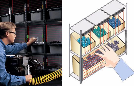 邦納公司的PVA光幕是解決汽車總成裝配線應(yīng)用問(wèn)題的鑰匙。PVA光幕的應(yīng)用能夠有效防止裝配過(guò)程中出現(xiàn)錯(cuò)誤,它的發(fā)射、接收裝置安于料箱兩側(cè),其高清晰度的工作指示燈指示操縱者選擇特定料箱。操縱者選取正確工件時(shí),PVA光幕被阻斷,輸出信號(hào)進(jìn)入PLC或計(jì)算機(jī)以確認(rèn)操作正確,PLC或計(jì)算機(jī)會(huì)啟動(dòng)下步工序料箱的PVA指示燈,錯(cuò)誤操作或不按順序的操作將能夠被及時(shí)發(fā)現(xiàn)。