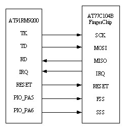 3、AT91RM9200與AT77C104B FingerChip連接及通信過程