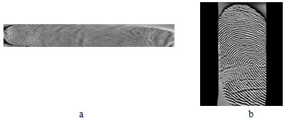 圖3 a.拼接前的指紋幀 b.拼接后的指紋圖像