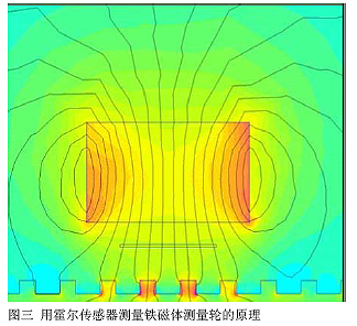 該速度傳感器利用磁場調(diào)制原理(如圖三)適用于模數(shù)為1和模數(shù)為3.5 的鐵磁體測(cè)量輪。被測(cè)齒輪的齒的形狀也是一個(gè)重要的因素,因?yàn)樵撍俣?A href="http://delizhi.cn" target=_blank>傳感器能夠測(cè)量的是方形齒齒輪和帶漸開線齒齒輪。根據(jù)測(cè)量輪的直徑和齒數(shù),該速度傳感器的分辨率在每圈60個(gè)脈沖到每圈300個(gè)脈沖之間,能滿足一般機(jī)車電機(jī)驅(qū)動(dòng)器的要求。