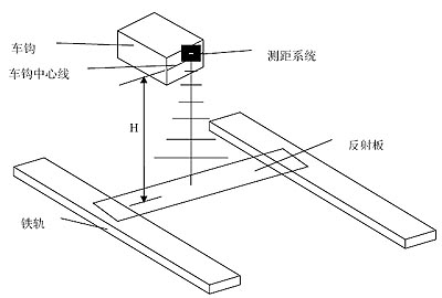 測(cè)量系統(tǒng)采用超聲波傳感器,自車(chē)鉤中心線(xiàn)向下豎直發(fā)射超聲波,并由放置在鐵軌面的的薄板反射回來(lái),傳感器接收到回波,由于光波在空氣中的傳播速度一定,通過(guò)計(jì)時(shí)器所計(jì)得的時(shí)間即可算出車(chē)鉤的高度。圖1 為測(cè)距原理的示意圖。