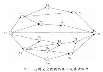 假設(shè)x0為失效節(jié)點(diǎn),xi為冗余節(jié)點(diǎn),則可以將節(jié)點(diǎn)xi移動到節(jié)點(diǎn)x0的位置,或者不直接將節(jié)點(diǎn)xi移動到處x0,而是尋找節(jié)點(diǎn)x0與節(jié)點(diǎn)xi之間的中介節(jié)點(diǎn),產(chǎn)生多條節(jié)點(diǎn)移動路徑,如圖1所示。