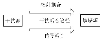 傳感器電磁兼容性問(wèn)題具有一般電子設(shè)備的共性,電磁干擾行為產(chǎn)生需具備干擾源、耦合途徑及敏感源等電磁兼容三要素,如圖1 所示。只要將這三個(gè)要素中的一個(gè)消除或抑制,電磁干擾問(wèn)題就會(huì)隨之消除或抑制。因此,電磁兼容性研究也是圍繞三要素展開(kāi)的,通過(guò)研究每個(gè)要素特點(diǎn),提出消除或抑制每個(gè)要素方法,從而解決電子電氣設(shè)備或系統(tǒng)電磁兼容性問(wèn)題。