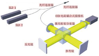 Fraunhofer研究所研發(fā)的這種檢測系統(tǒng)基于短波激光干涉原理,主要由兩個相干性激光部件組成。其中的第一個是純光學的全光纖技術元件(SLD1),第二個則是Michelson激光干涉器(SLD2)。這種檢測儀器的檢測距離大約為500μm,清晰度達1nm的檢測范圍約80μm.