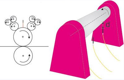 在這個系統(tǒng)中,旋轉的回轉體零部件的圓度和圓跳動對檢測的精度、噪聲和整個系統(tǒng)的磨損有著重要的影響,源于它們的錯誤信號應在生產(chǎn)加工過程中及時的予以識別并排除,其中包括機床重要的零部件,如輸出軸、轉子、主軸、軋輥(支撐輥和工作輥)和導向輥。在這些回轉體零件上應安裝傳感器,以便采集重要的生產(chǎn)過程數(shù)據(jù),及時地采取必要措施。