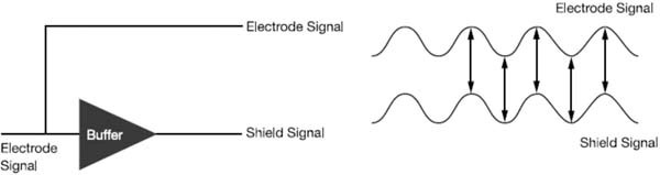 一個常見應用是將屏蔽驅(qū)動連到與電極和對應電極端子相連的同軸電纜屏蔽上。