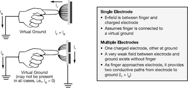 近接電容式傳感是一項支持觸摸檢測的技術,它通過測量電容和展示電容變化來反映周圍材料的變化。某些傳感器通過生成電場并測量該電場所遭受的衰減,進而測出變化。與感應式傳感器不同的是,近接電容式傳感器能夠檢測具有傳導性的任何事物或不同于傳感器電極環(huán)境介電性能的任何事物。它們是出色的觸摸板支持工具,由于我們?nèi)梭w的主要成分是水,具有很高的介電常數(shù);并且我們體內(nèi)包含離子物質(zhì),這使得人體成為很好的電導體。