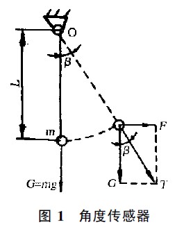 利用重力原理制造的角度傳感器如圖1所示。擺動(dòng)部分的質(zhì)量為m,重心距轉(zhuǎn)軸的距離為L(zhǎng),當(dāng)汽車(chē)車(chē)體傾斜或做曲線運(yùn)動(dòng)時(shí),均能使擺動(dòng)部分偏轉(zhuǎn)。設(shè)圖1中的受力分析是無(wú)任何摩擦的理想狀態(tài)下,力F為下滑力F1和向心力F2共同作用的結(jié)果,力F與傾翻力成正比,所產(chǎn)生的偏轉(zhuǎn)角度也就與傾翻力成正比。擺動(dòng)部分所受重力G與F的合力T是擺桿所受拉力,擺動(dòng)角度=tg-1(F/G),與L無(wú)關(guān),當(dāng)質(zhì)量m一定時(shí),只與F有關(guān),且成正比。實(shí)際上,由于存在轉(zhuǎn)軸等處的摩擦,則L越長(zhǎng),擺動(dòng)轉(zhuǎn)矩越大,精度越高。
