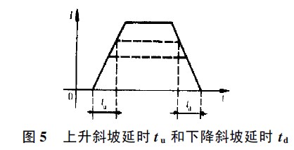 再看一下減速的過(guò)程:電流放大板輸出電流的存在或消失要經(jīng)上升斜坡延時(shí)tu和下降斜坡延時(shí)td。上升斜坡延時(shí)是指輸出電流(平均值)從0達(dá)到某一穩(wěn)定值(由Uo1決定)所需要的時(shí)間。下降斜坡延時(shí)是指控制信號(hào)Uo1消失,輸出電流從這一穩(wěn)定值減小至0的時(shí)間,詳見(jiàn)圖5。在電流放大板上,上升斜坡延時(shí)和下降斜坡延時(shí)可以分別調(diào)整,減速的平穩(wěn)性由上升斜坡延時(shí)所決定,上升斜坡延時(shí)越長(zhǎng),輸出電流的上升速率越小,比例電磁鐵移動(dòng)到終止位置(由輸出電流決定)所用的時(shí)間就越長(zhǎng),減速效果越平穩(wěn);異而反之。比例電磁鐵移動(dòng)到某一終止位置后,即完成減速的平穩(wěn)過(guò)渡,持續(xù)一段時(shí)間后,傾翻力矩小于設(shè)定值或消失,使Uo1減小或消失。若使Uo1減小,則輸出電流按td所決定的斜率下降,直至為0。假設(shè)Uo1突然消失,輸出電流則經(jīng)過(guò)td延時(shí)后為0,從而,實(shí)現(xiàn)了減速后重新加速的平穩(wěn)性。對(duì)于上升斜坡延時(shí)和下降斜坡延時(shí),亦應(yīng)根據(jù)不同車(chē)型和系統(tǒng)參數(shù)決定。