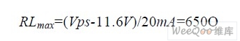 當電源電壓低于36V 時,功耗可低一些。IN4048 接成的橋式電路可以保證XTR105 的電源極性不反接,從而真正實現(xiàn)兩線制。C2 為去耦電容,其值是0.01μF,用于降低高頻干擾。負載RL 用于將傳送的4~20mA 的電流轉換為電壓,供后級處理。選擇負載阻抗RL,應使得輸出在4~20mA 范圍內變化時,引腳7 和引腳8 之間的電壓保持在11.6V~40V 的電源電壓范圍內。也可以由下式確定最大的RL: