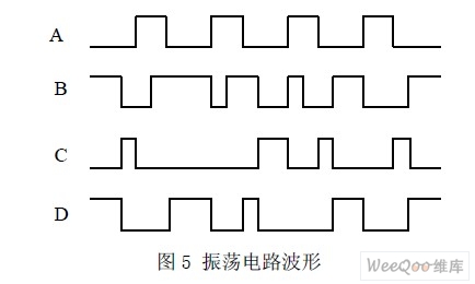 A、B、C、D 四個點的波形如圖5 所示。由圖4 中U1 的4 個或非門組合邏輯可知: