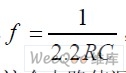 由于電容充放電的時間T為2.2RC,所以輸出的方波頻率:
