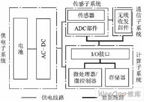 計(jì)算子系統(tǒng)包括微處理器/微控制器、存儲(chǔ)器和I/O接口電路等硬件;負(fù)責(zé)控制傳感器、執(zhí)行通信協(xié)議和處理傳感數(shù)據(jù)等軟件算法;是節(jié)點(diǎn)的控制和計(jì)算核心。