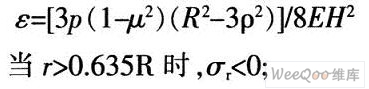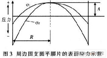 計(jì)算時(shí)假設(shè):小撓度理論;壓力是均勻作用于平膜片表面。由平膜片的應(yīng)力計(jì)算公式可知: