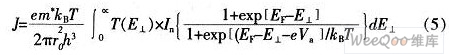 式中:e為電子電荷的大小,m*為GoAs電子的有效質(zhì)量,kB為玻爾茲曼常數(shù),T為絕對(duì)溫度,EF為費(fèi)米能級(jí),E1為入射電子垂直(縱向)能量。