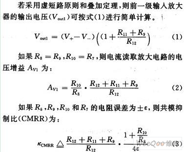 根據(jù)式(3)可知,若前級放大器增益(R12+R11+R9)/R12增大,則CMRR也相應(yīng)增大,如果R11和R9使用的是基本相同的值,那么稍稍出現(xiàn)偏差也無所謂。為了能改變放大倍數(shù),甚至可以大幅度地改變R12的值,因為式(1)中的V+和V-各自之間沒有任何關(guān)系,所以CMRR也不會發(fā)生大的變化。并且在多數(shù)情況下,通過對稱使用U1和U2兩個運算放大器,而且R11=R9,則U1和U2兩個運算放大器由CMRR引起的輸出誤差,相位相同而且大小相等,這樣,差動放大電路的輸出誤差就會小到可以忽略不計。