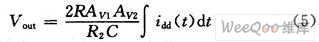 為了避免U4工作在飽和區(qū),不使用正反饋回路。根據(jù)虛短路和虛斷路原則,積分單元的電壓增益AV2可由式(4)簡單計算。