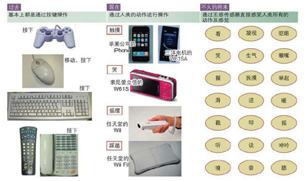 歷本教授認為iPhone 的上市將帶動今后用戶界面的多樣化發(fā)展。未來設備的用戶界面將逼真到讓人覺得設備就像在跟人打交道,甚至可以通過握手來交流感情( 圖1) 。iPhone 與Wii 的廣受歡迎并不是奇跡,而是必然結果。