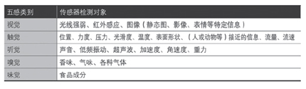 要想開發(fā)出新型的用戶界面,讓人們可以更直接地與電子設備進行互動,其中最重要的就是傳感器,特別是對應人類視覺、聽覺、觸覺、味覺和嗅覺的五感傳感器(見表1)。要使用戶界面更人性化,前提條件就是電子設備必須具有類似于人類感覺器官的傳感器。實際上,iPhone的用戶界面就采用了相當于觸覺器官的觸覺傳感器。索尼等公司也開始在相機及手機上采用“微笑快門”,用于檢測鏡頭里的人物面部信息,當識別出笑臉時就自動按下快門。任天堂的Wii所采用的“Wii Fit平衡板”中則使用了壓力傳感器,站在板上的人可通過動作對其進行控制。壓力傳感器也可以感知一部分觸覺。