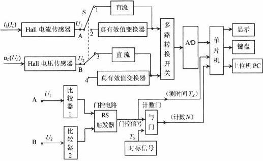 由正弦交流電有功功率的定義P=UIcosψ可知,只要準(zhǔn)確測量出U,I及電流與電壓相位差ψ,就可算出P與cosψ。采用傳統(tǒng)的電磁式電壓、電流互感器進(jìn)行測量,由于互感器的非理想性,除存在變比誤差外,更主要的是存在較大的相位誤差,這就使測得的ψ值不能真實(shí)地反映負(fù)載的性質(zhì)。若采用霍爾電壓、電流傳感器及真有效值轉(zhuǎn)換器(如AD637)等,可以使功率及功率因數(shù)的測量精度大大提高。