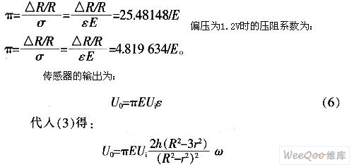 這樣即可組成差動全橋電路,測出壓力P的變化。式中σri,σro分別為內(nèi)、外電阻上所受徑向力的平均值;(△R/R)i,(△R/R)分別為內(nèi)、外電阻的相對變化。