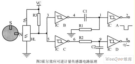 圖3霍爾效應(yīng)可逆計(jì)量傳感器電路原理