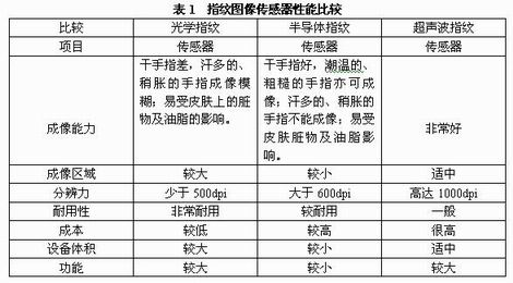 為克服物理方式的缺點(diǎn),開發(fā)的光學(xué)傳感器、半導(dǎo)體傳感器、超聲波傳感器等對獲取高質(zhì)量指紋圖 像提供了良好的技術(shù)保障,具有很好實(shí)用價(jià)值。同時,更先進(jìn)的指紋圖像傳感器亦在研發(fā),目的是獲得足夠的指紋細(xì)節(jié),并使指紋圖像達(dá)到較高分辨力,提高指紋識 別準(zhǔn)確性、可靠性。本文主要介紹各種指紋圖像傳感器技術(shù)關(guān)鍵、性能特點(diǎn),并簡要介紹其應(yīng)用情況及發(fā)展趨勢。