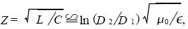 因?yàn)橥S電纜的分布電容與分布電感比較均勻且穩(wěn)定, 其特性阻抗基本保持不變.同軸電纜的分布電容為