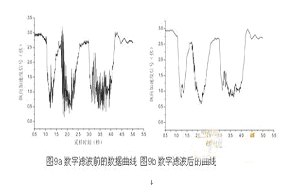 調(diào)整圖8中各個阻容元件的參數(shù),即可設(shè)置濾波截止頻率和延時大小。汽車運(yùn)行過程中,在較好路面上行駛時,由于信號較好,延時盡量要小,而在顛簸路面上行駛,則希望濾波效果要好。但是由于硬件濾波的頻率特性一經(jīng)設(shè)計完畢,無法實時修改,故需要在軟件中設(shè)計數(shù)字濾波環(huán)節(jié)。數(shù)字濾波常用的有維納濾波器、卡爾曼濾波器、線性預(yù)測器、自適用濾波器等。在這里選用計算量小、實時性能好的一階低通濾波。