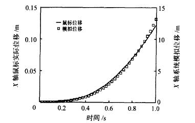 圖4 X軸的鼠標(biāo)實(shí)際位移與模擬位移對(duì)照?qǐng)D