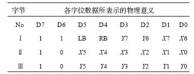 編碼的目的是將X和Y方向的位移改變量,連同鼠標(biāo)按鍵的實(shí)時(shí)信息,按照標(biāo)準(zhǔn)的Microsoft鼠標(biāo)協(xié)議要求的格式進(jìn)行編碼,以便最后發(fā)送到主機(jī)的信息能夠被電腦正確識(shí)別,從而使電腦能正確處理發(fā)送給它的位移信號(hào),來正確控制鼠標(biāo)光標(biāo)的移動(dòng)等動(dòng)作。表1表示的即是標(biāo)準(zhǔn)的鼠標(biāo)協(xié)議規(guī)定的三字節(jié)數(shù)據(jù)包格式,第1個(gè)字節(jié)記錄的是左右按鍵的信息和鼠標(biāo)X,Y位移的最高2個(gè)字位的數(shù)據(jù),按鍵按下時(shí),對(duì)應(yīng)的位置1,否則,置0;第2和第3個(gè)字節(jié)分別記錄X和Y方向位移的低6位數(shù)據(jù)。位移值的范圍取-127~+127,再大的位移改變量會(huì)自動(dòng)溢出。