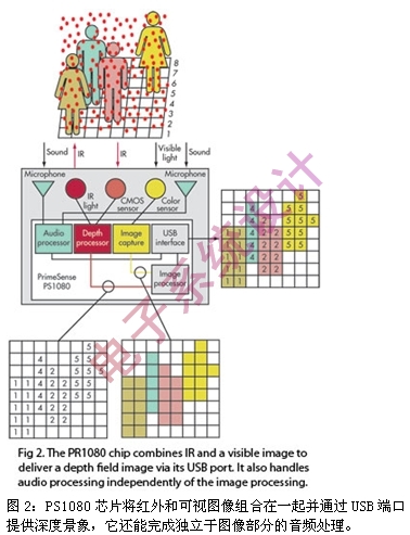 PrimeSense技術(shù)是微軟(Microsoft)Kinect傳感器系統(tǒng)的基礎(chǔ),該傳感器系統(tǒng)被設(shè)計(jì)為與微軟Xbox 360控制臺(tái)游戲系統(tǒng)一起工作(圖1)。它的工作原理非常簡(jiǎn)單,但執(zhí)行過(guò)程相當(dāng)復(fù)雜。PS1080系統(tǒng)級(jí)芯片(SoC)則是一款完美支持PrimeSense技術(shù)的產(chǎn)品。