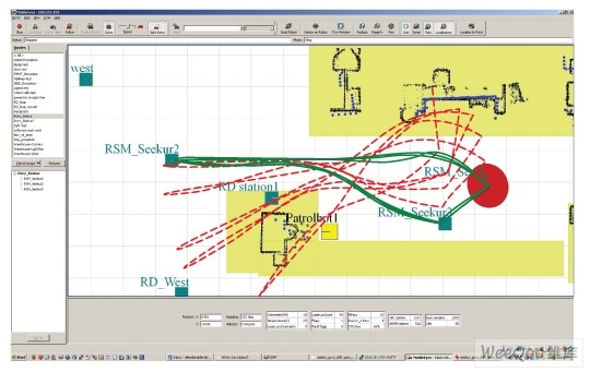 Seekur系統(tǒng)使用多種距離傳感器。對于室內應用,該系統(tǒng)采用270°激光掃描器為其環(huán)境構建映射圖。激光系統(tǒng)通過能量返回模式和信號返回時間測量物體形狀、尺寸及與激光源的距離。在映射模式中,激光系統(tǒng)通過將工作區(qū)內多個不同位置的掃描結果組合,描述工作區(qū)特性(圖 5)。這樣便產(chǎn)生了物體位置、尺寸和形狀的映射圖,作為運行時掃描的參考。激光掃描器功能結合映射信息使用時,可提供精確的位置信息。該功能如果單獨使用,會存在一定限制,包括掃描時需要停機以及無法處理環(huán)境變化等等。在倉庫環(huán)境中,人員、叉車、托盤搬運車及許多其他物體常常會改變位置,這可能影響到達目的地的速度,以及到達正確目的地的精度。