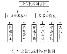 上位機(jī)控制軟件使用VC++6.0 和Access2002進(jìn)行編程設(shè)計(jì), 按其功能主要分為數(shù)據(jù)處理模塊和數(shù)據(jù)庫(kù)模塊, 如圖7。