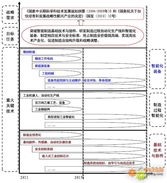 針對我國高端裝備和制造過程智能化等方面的差距,攻克一批核心基礎(chǔ)部件、微納制造技術(shù)、智能傳感器與儀器儀表、嵌入式工業(yè)控制芯片、高速/高精制造工藝與技術(shù)、制造業(yè)信息化技術(shù)、制造過程安全與安防技術(shù)等,形成智能制造的技術(shù)體系和系統(tǒng)創(chuàng)新能力,實(shí)現(xiàn)我國制造技術(shù)創(chuàng)新的跨越式發(fā)展。