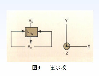 圖 3 中所示為導(dǎo)電材料的矩形薄板,沿Y軸施加了一個電壓VS,在板的霍垂直方向施加了一個磁場 B(沿 Z 軸),霍爾電壓VH由下式求得VH= uH(W/L)BVs 其中uH是霍爾遷移,W是霍爾板的寬度,L 是長度。 由于洛侖茲力作用在用導(dǎo)電材料制成的電荷載體上而產(chǎn)生的霍爾效應(yīng)等于:F=q(vB) 其中 q 是電荷載體上的電荷,v 是電荷載體的速度,B 是磁場,力使電流變形,并將其擠向?qū)щ姲宓囊粋?cè)。這造成 X 軸上的等勢線變,形導(dǎo)致產(chǎn)生霍爾電壓。如果霍爾板的長度遠大于寬度,則霍爾電磁場與洛侖茲力相平衡。電流變成與 Y軸平行。最實用的半導(dǎo)體霍爾元件一般來說是正方形。此時電流相對于勵磁電壓有一個角度。