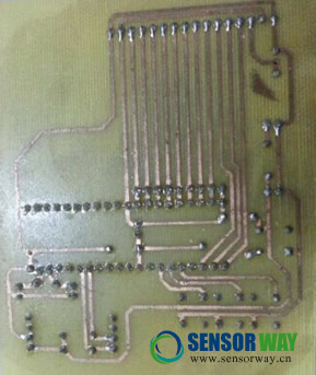 制作 PCB 板時(shí)注意布線不要過于緊湊,在焊錫時(shí)候容易焊在一起導(dǎo)致短路,本次設(shè)計(jì)的 PCB 板是簡易 PCB 板, .將轉(zhuǎn)印紙有圖的一面緊貼覆銅板有銅一面, 設(shè)法將紙固定(如用透明膠等) ;銅面朝上,水平放入熱轉(zhuǎn)印機(jī),稍用力送入,感覺板被夾住后放手;PCB 板從機(jī)器另一邊出來后,緩慢將轉(zhuǎn)印紙分離,并檢查轉(zhuǎn)印結(jié)果是否符合要求,若出現(xiàn)斷線等情況,可用油性筆補(bǔ)上。然后對銅板進(jìn)行腐蝕只有電路上附有銅板,清洗就是要將 PCB 板上的墨粉去掉,露出光潔的銅線;松香是助焊劑,助焊劑的作用是輔助熱傳導(dǎo)、去除氧化物、降低被焊接材質(zhì)表面張力、去除被焊接材質(zhì)表面油污、增大焊接面積、防止再氧化等,在這幾個(gè)方面中比較關(guān)鍵的作用有兩個(gè)就是:去除氧化物與降低被焊接材質(zhì)表面張力。