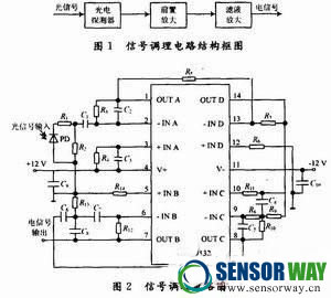 光電探測器接收到的光信號一般都非常微弱,而且光電探測器輸出的信號往往被深埋在噪聲之中。因此,要先對這樣的微弱傳感信號進(jìn)行預(yù)處理,以將大部分噪聲濾除掉,并將微弱信號放大到后續(xù)處理器所要求的電壓幅度。這樣,就需要通過前置放大電路、濾波電路來輸出幅度合適、并已濾除掉大部分噪聲的待檢測信號。