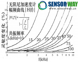 2)測(cè)試前要大致估計(jì)被測(cè)量的頻率范圍, 并檢查它是否落在傳感器幅頻曲線(xiàn)的工作頻帶(曲線(xiàn)的平直段)內(nèi)。 圖 1 和圖 2 為無(wú)阻尼加速度計(jì)(壓電加速度計(jì)阻尼比約為 0.01-O.04,可視為無(wú)阻尼)的幅頻曲線(xiàn), 由圖中可知如傳感器固有頻率 fn=1OkHz, 試件振動(dòng)頻率 f=3kHz,則靈敏度變化約為 10%。