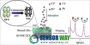 中國科學院新疆理化技術研究所環(huán)境科學與技術研究室科研人員采用高溫碳化金屬有機骨架化合物(MOF)制備N原位摻雜的微孔碳作為工作電極的修飾材料用于電化學檢測鎘離子和鉛離子。該N摻雜微孔碳制備過程比已經報道的摻雜碳材料的簡單,且該修飾材料具有高的導電性,高的比表面積(941m2/g)和高的N含量(25 at%),摻雜的N及微孔結構都能有效吸附鎘離子和鉛離子;谠摬牧想娀瘜W傳感器可以實現(xiàn)對鎘離子和鉛離子的同時檢測,其對鎘離子檢測限為0.05ppb,比世界衛(wèi)生組織(WHO)公布的飲用水標準低200倍;對鉛離子檢測限為1.5ppb,是WHO標準的1/2。此外,該N原位摻雜的微孔碳材料應用于實驗室自來水水樣測定的回收率可達90%~105%。該研究為原位雜原子摻雜多孔碳電極修飾材料檢測重金屬提供了參考。