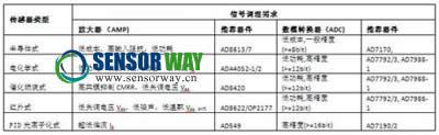 表1: 信號(hào)調(diào)理要求VS氣體傳感器類(lèi)型