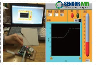 本系統(tǒng)對(duì)一個(gè)溫度傳感器傳輸?shù)臄?shù)據(jù)進(jìn)行了測(cè)試,得到的結(jié)果和溫度及所測(cè)的結(jié)果非常接近,但是其比溫度計(jì)的靈敏度和分辨率要高很多。另外系統(tǒng)工作也非常穩(wěn)定,環(huán)境的影響也很小。圖3是測(cè)試的結(jié)果,其中20℃的時(shí)候?yàn)槭覝,溫度升高是由于用手觸摸傳感器所致。