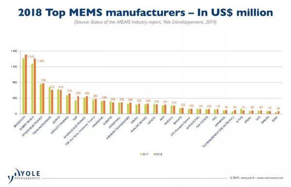 2018年MEMS廠商銷售額排行榜,TOP30。
