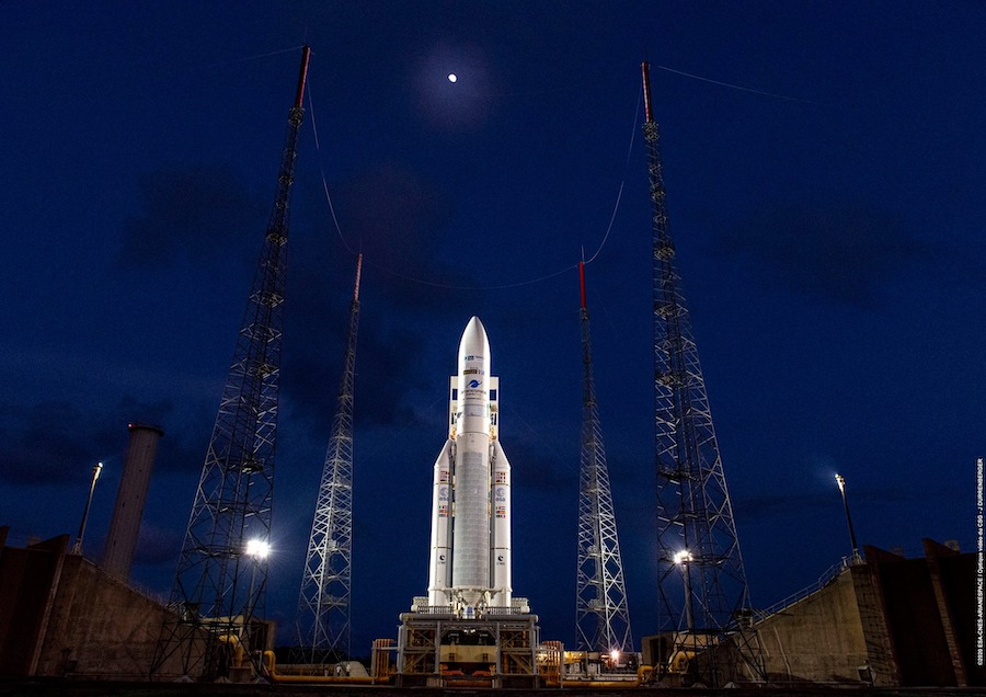 在周五晚上進(jìn)行了擦洗式發(fā)射嘗試之后,法屬圭亞那的團(tuán)隊(duì)排空了阿麗亞娜5號(hào)火箭的液態(tài)氫和液態(tài)氧推進(jìn)劑罐,并開始將車輛固定以回滾到裝配大樓。