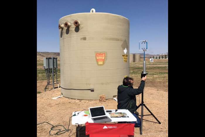 在盲人測試期間,ALFaLDS在科羅拉多州柯林斯堡的模型石油和天然氣測試設(shè)施中部署。圖片提供:洛斯阿拉莫斯國家實驗室