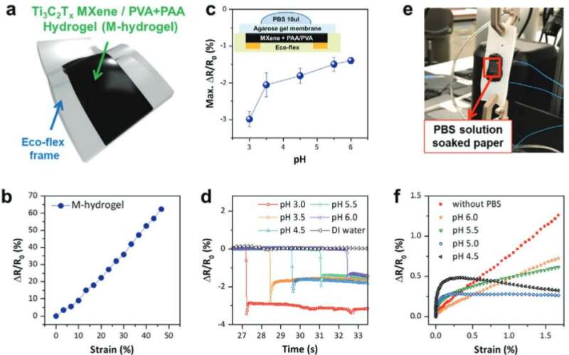 使用新型 MXene水凝膠化合物開發(fā)的原型可穿戴傳感器能夠通過隨著機械應力的增加產(chǎn)生不同的電阻模式來跟蹤肌肉運動。當傳感器暴露于酸性或堿性溶液形式的額外離子時,這些模式會立即發(fā)生變化。