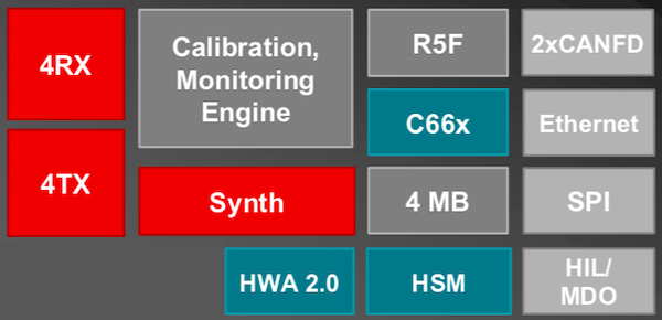 Raveh 指出:“借助 AWR2944,我們?yōu)樵O(shè)備增加了一個發(fā)射器、一個改進的無線電子系統(tǒng)和更先進的計算資源。” 此外,第二代 SoC 正在引入對以太網(wǎng)通信的支持——隨著車載數(shù)據(jù)量和流量的增加,這一功能變得越來越重要。