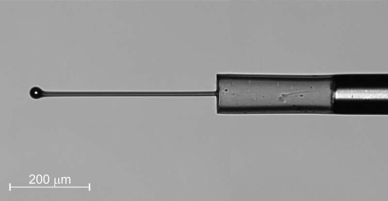 在光學(xué)學(xué)會 (OSA) 期刊Optics Letters中,Donlagic 和 Simon Pevec 描述了他們的新傳感器,該傳感器由石英玻璃制成,形成一個只有 800 微米長和 100 微米直徑的圓柱體——與人類頭發(fā)的直徑大致相同。他們通過測量蒲公英種子的硬度或液體的表面張力,證明了新傳感器能夠以比微牛頓更好的分辨率測量力。