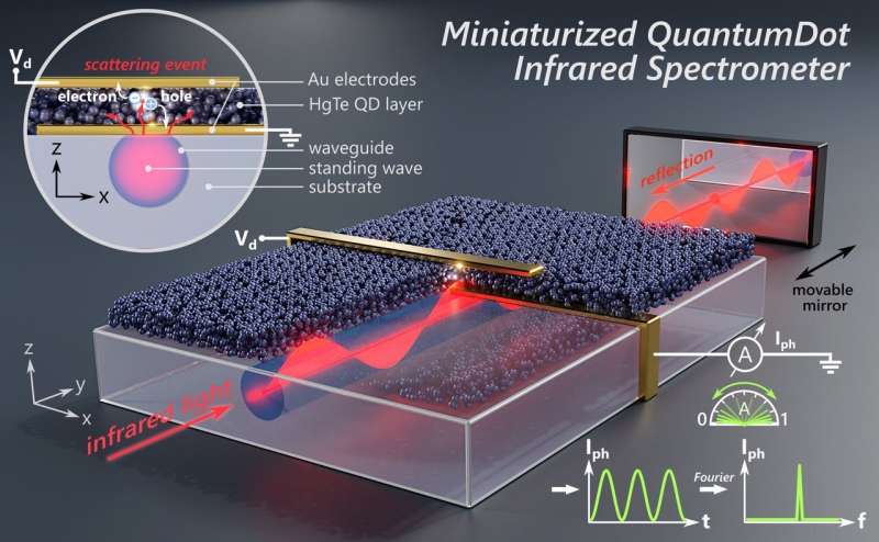 Empa、蘇黎世聯(lián)邦理工學院、EPFL、西班牙薩拉曼卡大學、歐洲航天局 (ESA) 和巴塞爾大學的一個科學家團隊構(gòu)建了一個概念驗證的小型傅里葉變換波導光譜儀,該光譜儀包含一個亞波長光電探測器作為一種光傳感器,由膠體碲化汞量子點 (Hg Te) 組成,并與互補金屬氧化物半導體 (CMOS) 技術(shù)兼容,正如他們在最近一期的Nature Photonics上所報告的那樣。